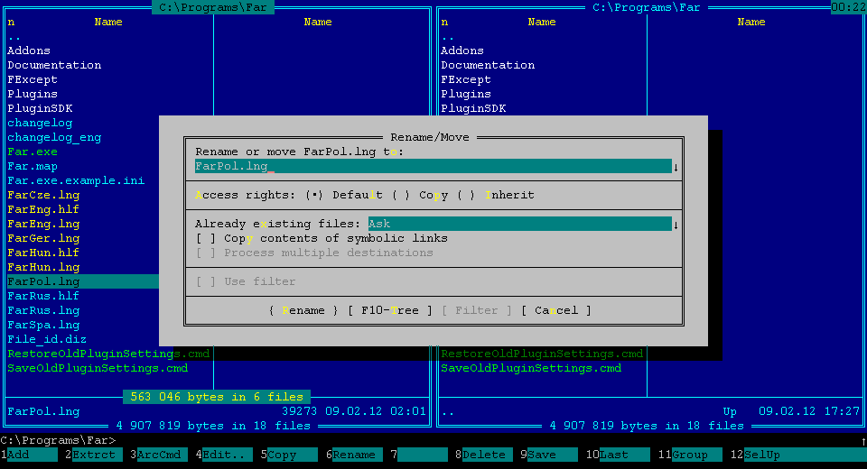 .добавлена возможность отмены во время копирования/удаления нескольких файлов (по ESC)