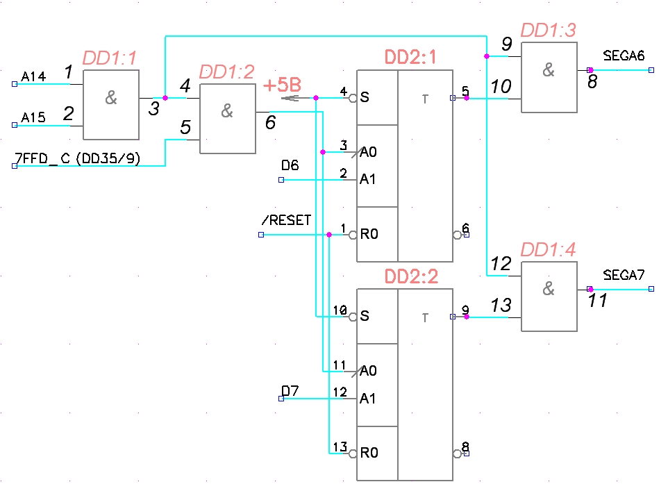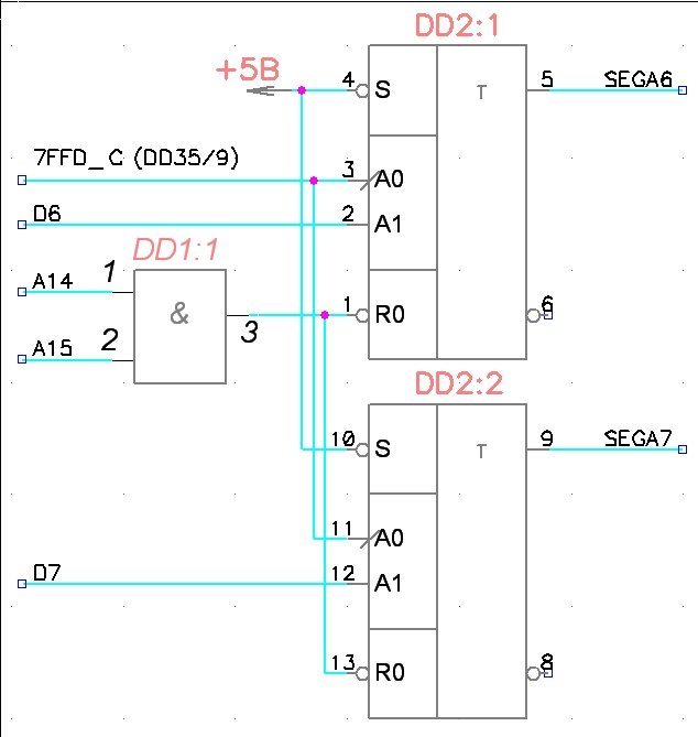 нолька wrote:запись в порт не должна зависеть от а14 а15 (точнее должна, но оно уже есть в дешифраторе порта 7ффд)