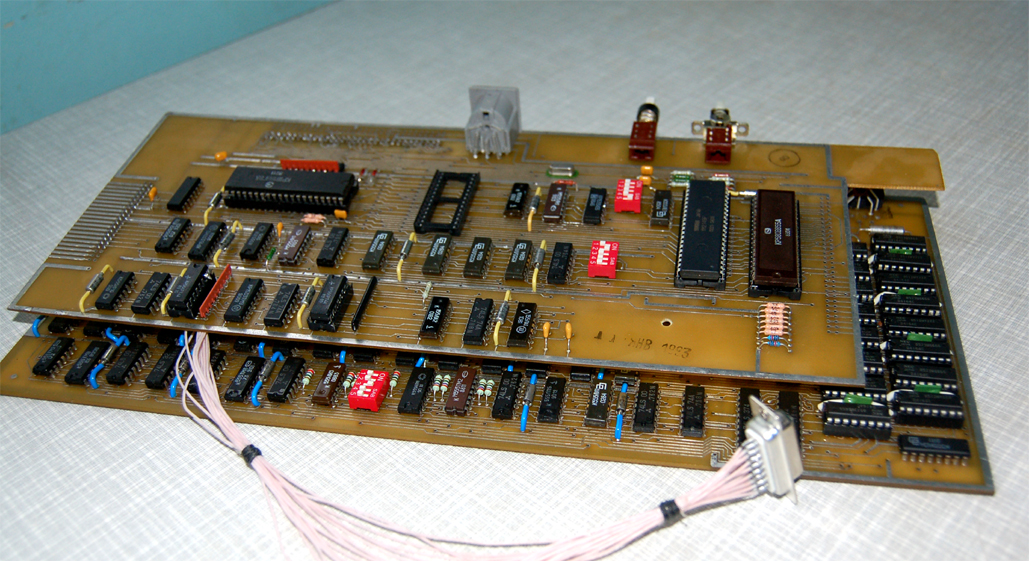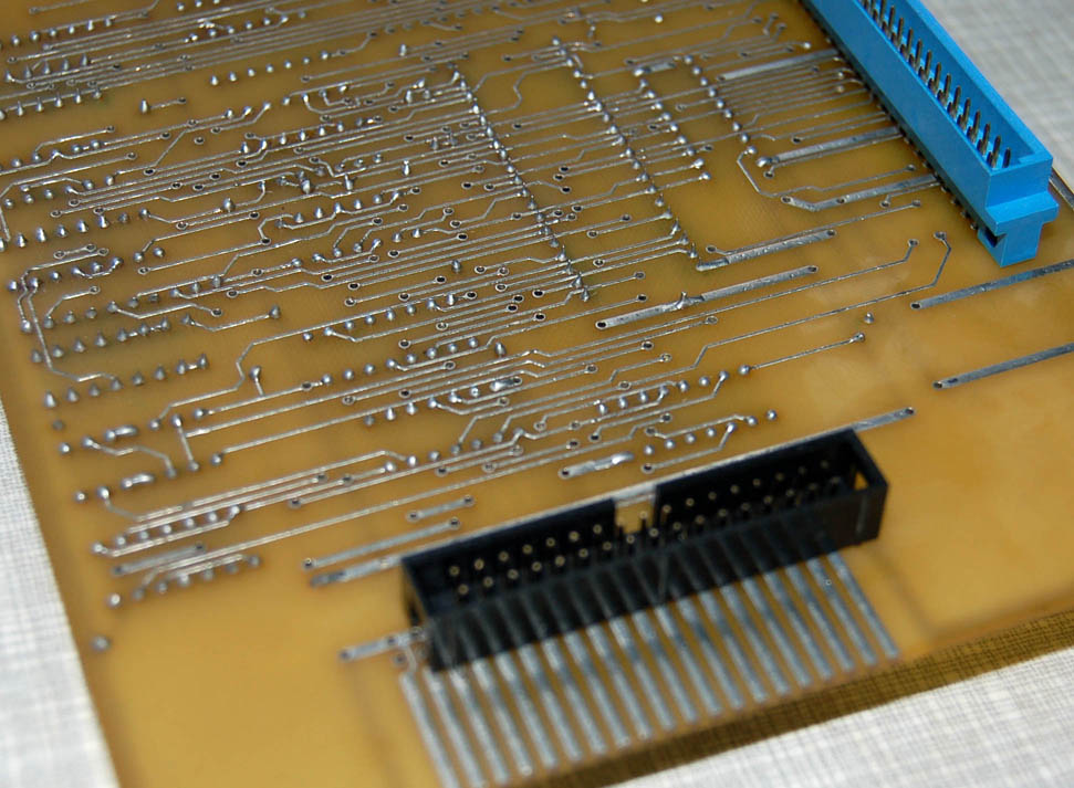 эт хорошо. а то я думал, что платы разошлись и пропали (кстати еще есть). нижняя плата версии 4.х, т.е. "цветная" - cp/m режим (он же расширенный 512x240) будет цветной, если припаять минимум две линейки ру7. Скажу сразу если будешь паять 1мб, то есть нюанс с сигналом we3. Верхняя плата версии 3.х. Т.е. там только трдос, ВВ55 и AY. Больше всего гемора конечно с РТшками на верхней плате, лучше их заменить на что-нибуть.. (может десофт подскажет). На нижней две пзушки - стандартная 27512, в нее можно зашить или профинскую с тестами или обычную любую из эмулятора, РФ2 - 2кб для видеоконтроллера, есть версия стандартная, а есть с почти пентагоновской разверткой, но там бордер больно узкий - по краям экрана черная кайма, это конечно все фиксится, но надо разбираться.
