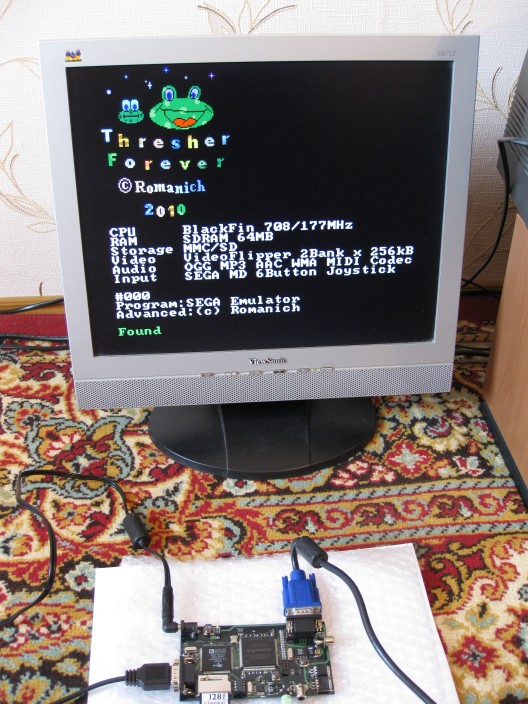 1. Процессор ADSP-BF532 работает аж на 708 MHz - что дало 60FPS на тяжёлых играх SEGA,NEO-GEO, а также раскачало эмуль GBA (спасибо за gpSP, а VisualBoy сосёт!)