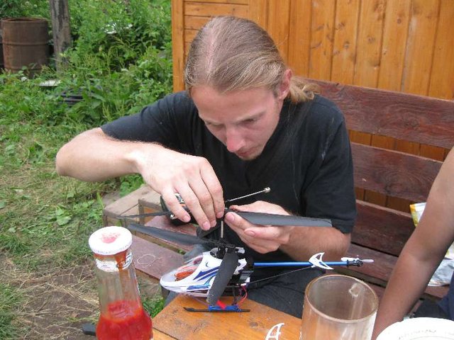 Потом Савелий ебанул вертолётом точно в провод ЛЭПа, и на этот раз полчаса искали сервоось (палочка с грузиками сверху). Она, кстати, постоянно отстыковывалась при ахтунг-посадках и прочих уебахтунгах :)
