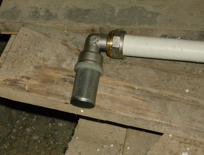 Пока народ тут про три фазы флудил, я потихоньку за водопровод взялся. Пока сделал только всасывающую трубу и 2 елды, одна с обратным клапаном и спусковым вентилем, другая с краном. Теперь ломаю голову, как бы насос из мосьвы перевезти, он сцуко здоровый.