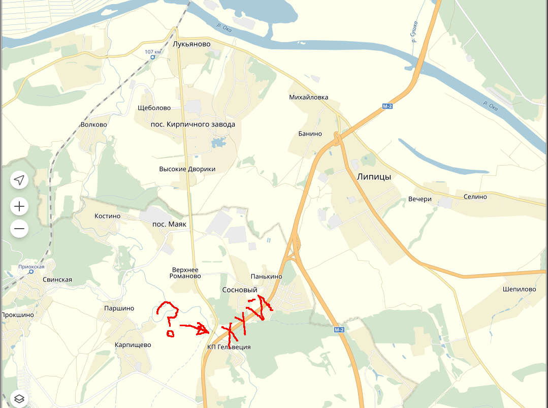 потом чуть назад по старой м2 и поворот.