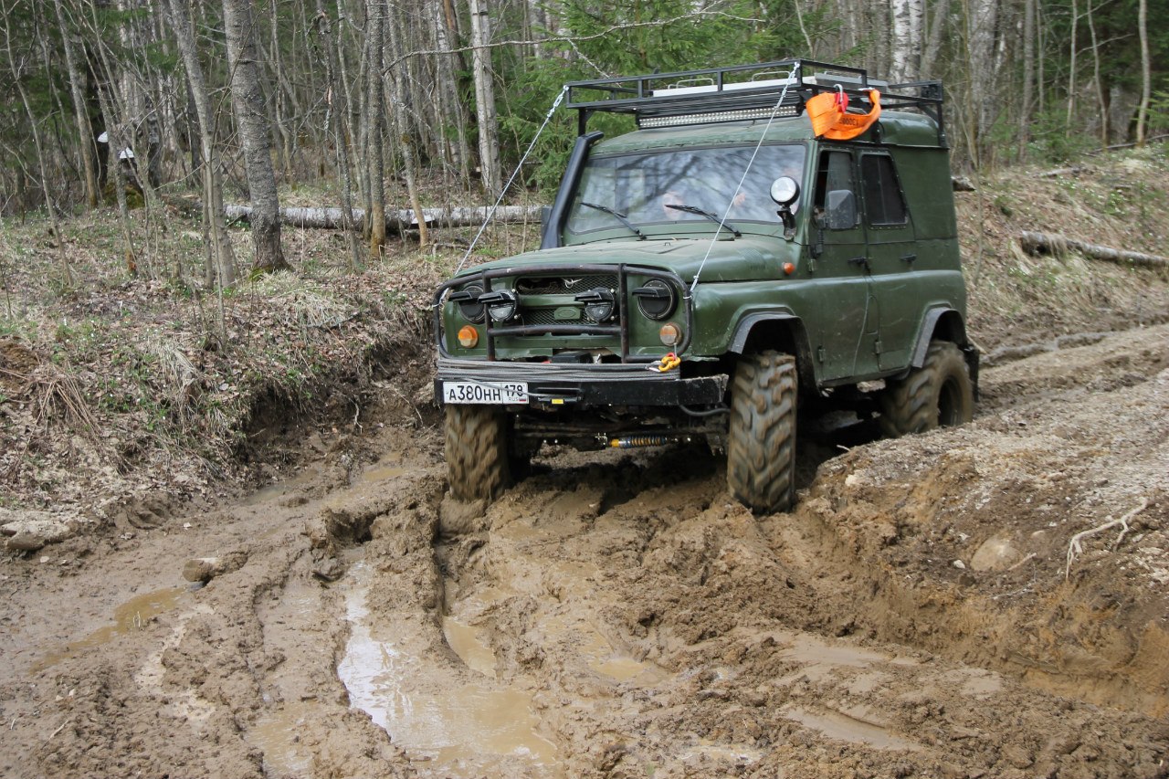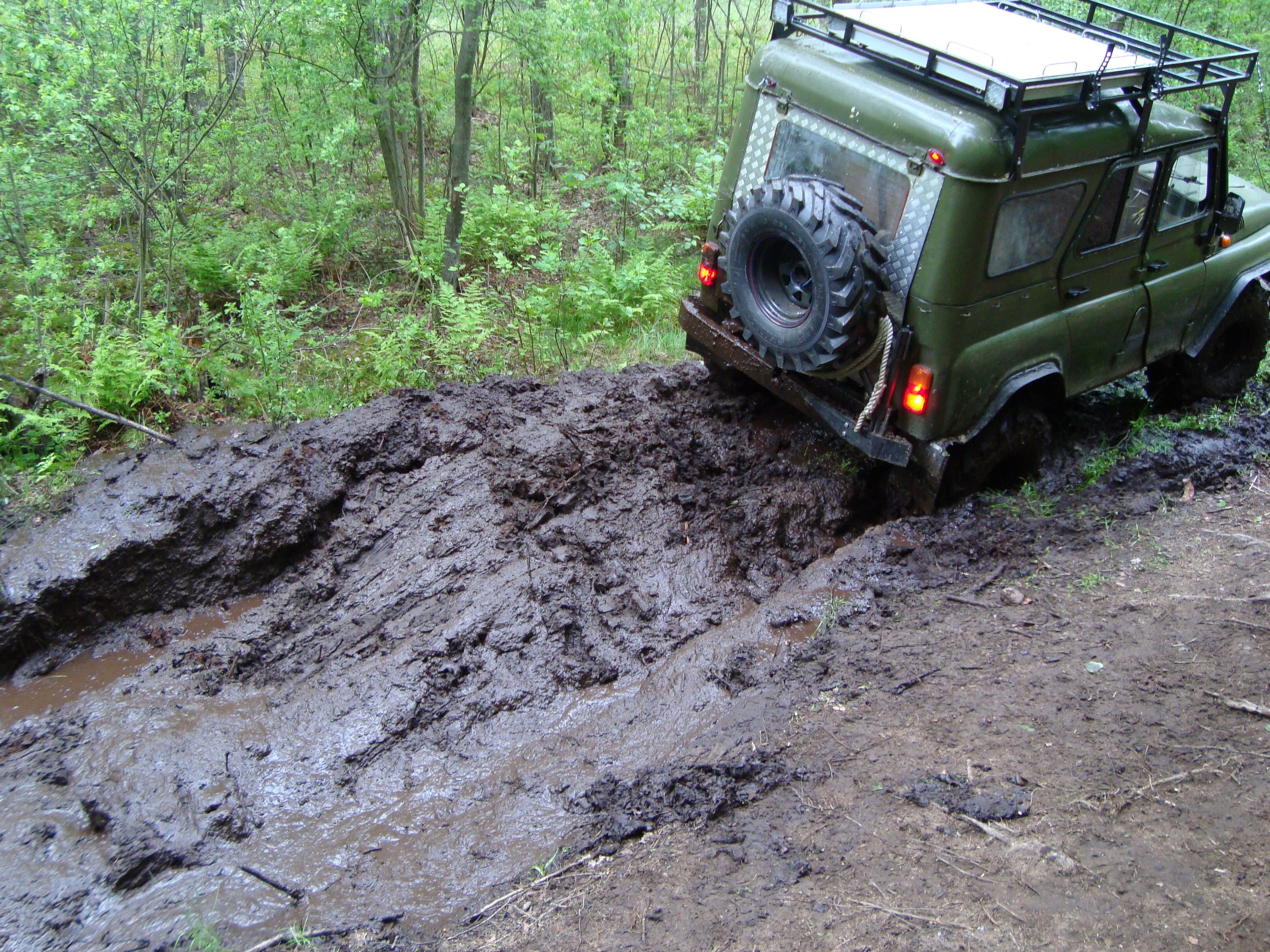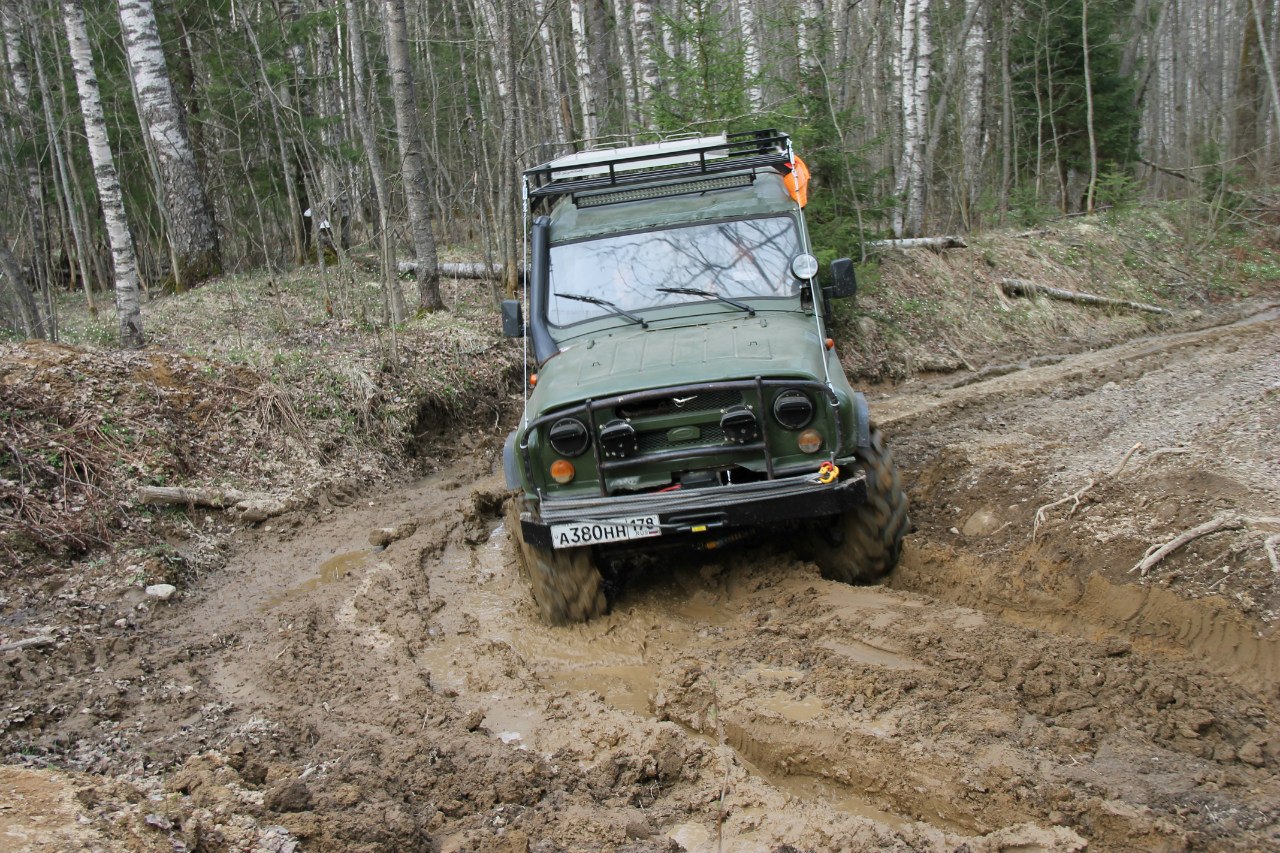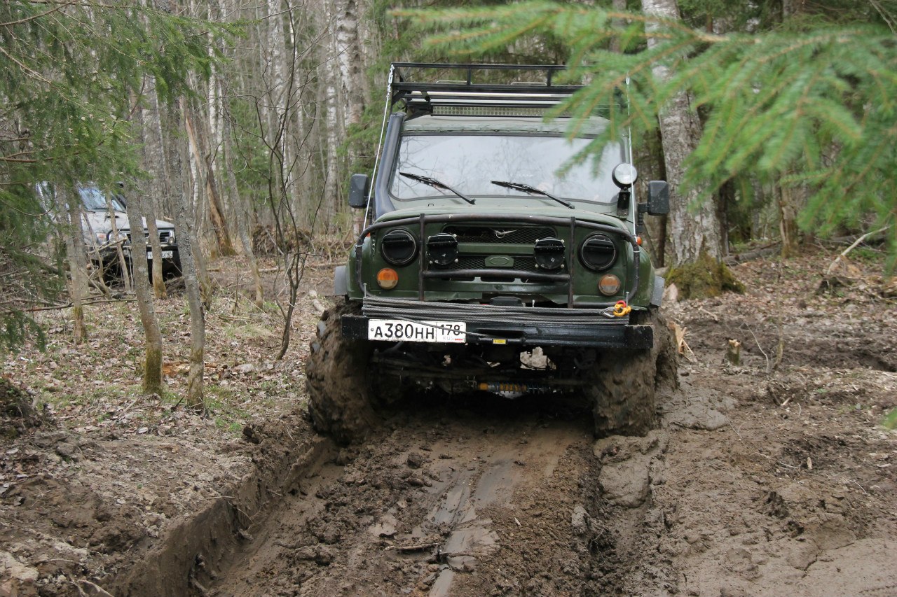 Рядом шел патруль длинный на 36ых крокодилах. Крокодилы на узком 8ом диске были больше белки на дюйм-полтора. Так вот, он был плотно залит грязью по всему перимеру до крыши. Потому что брал препятствия только с разгона, бешенно вращая колесами и поднимая фонтаны говна.