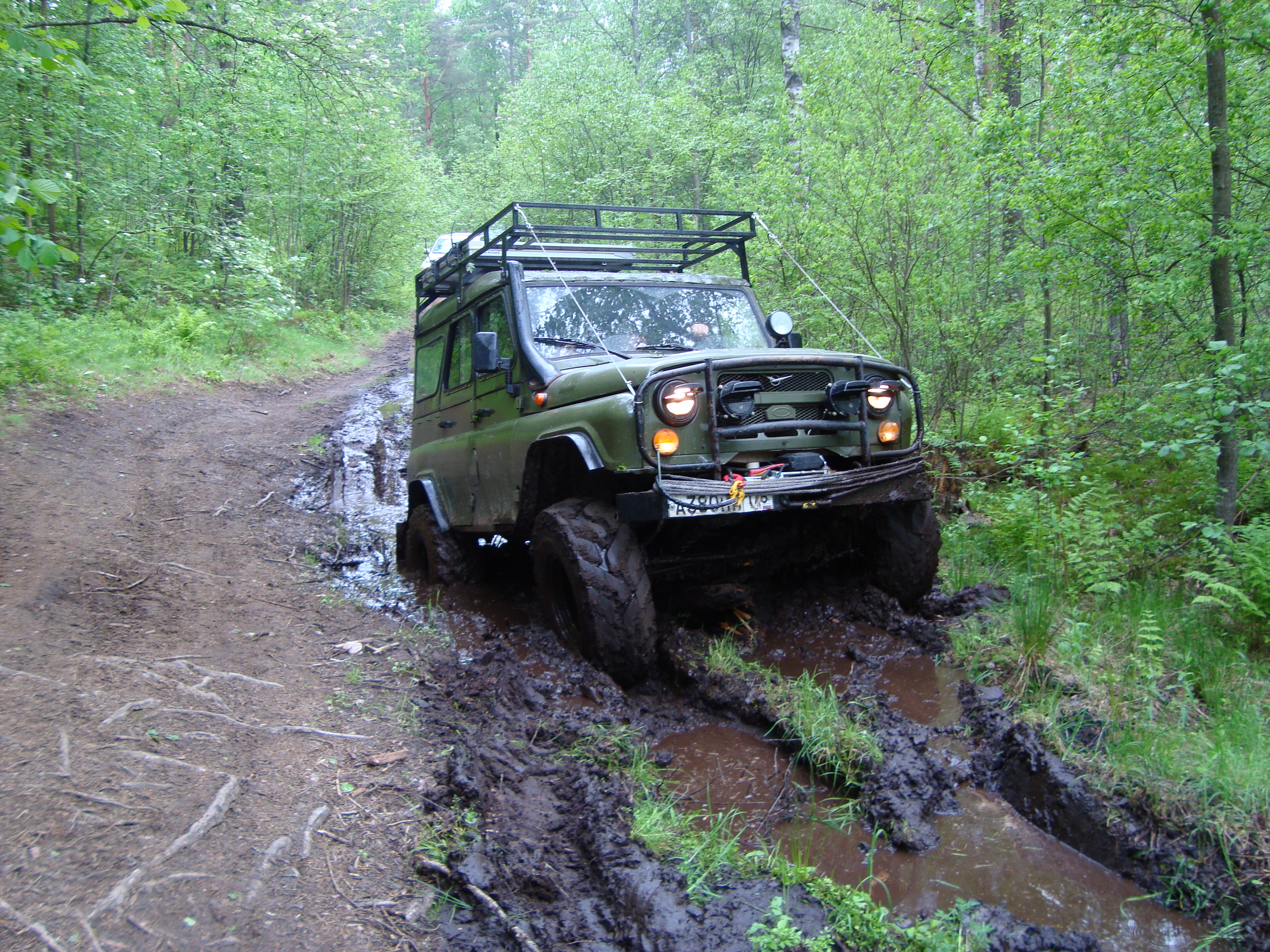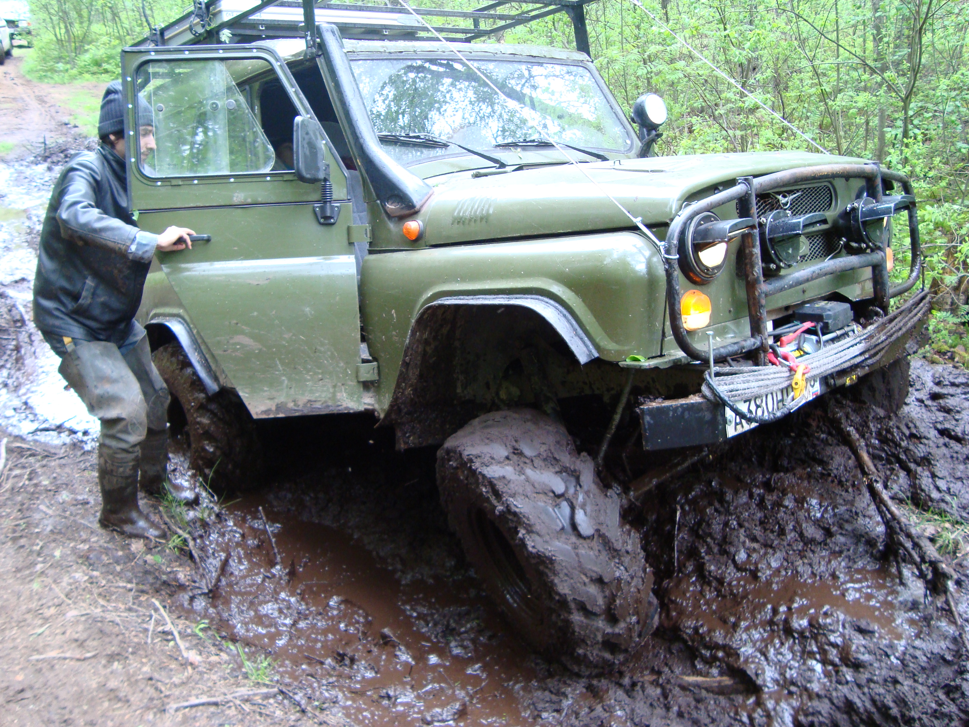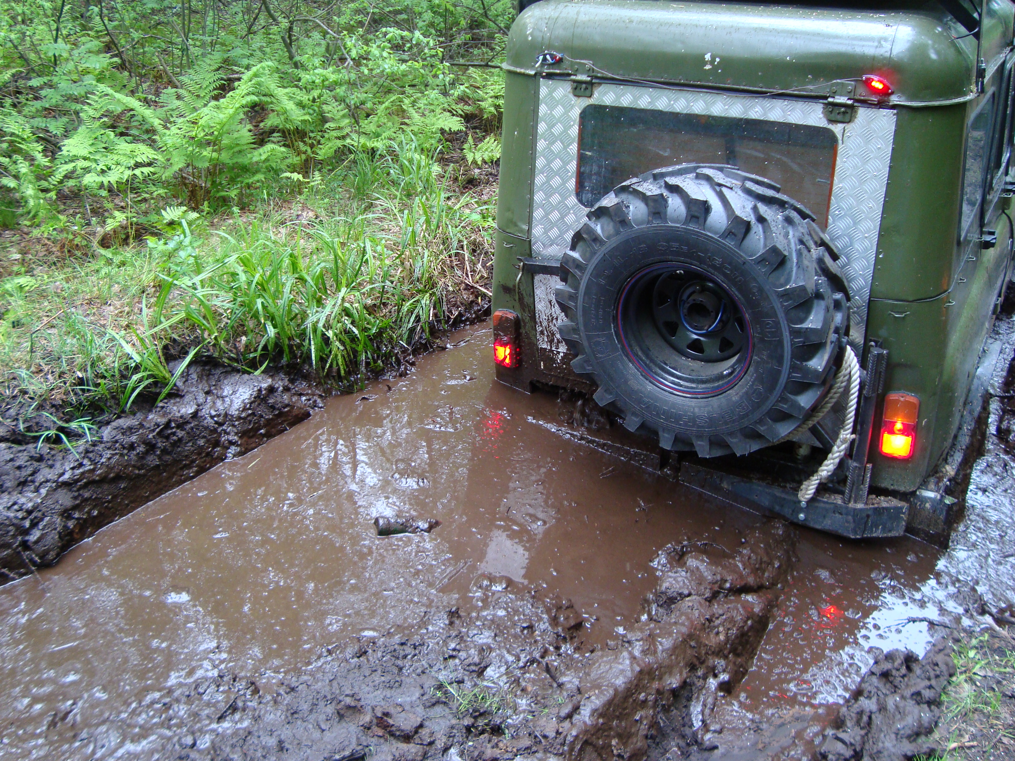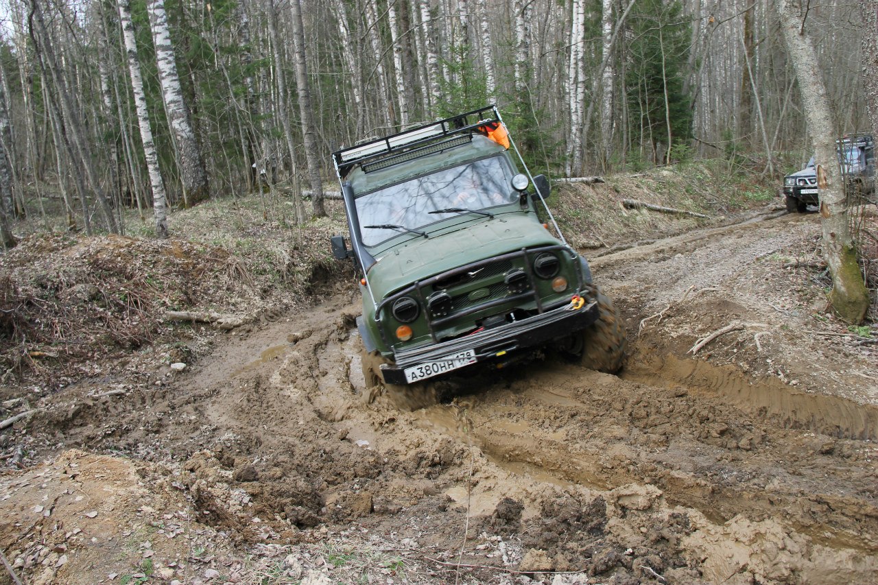 Рядом шел патруль длинный на 36ых крокодилах. Крокодилы на узком 8ом диске были больше белки на дюйм-полтора. Так вот, он был плотно залит грязью по всему перимеру до крыши. Потому что брал препятствия только с разгона, бешенно вращая колесами и поднимая фонтаны говна.